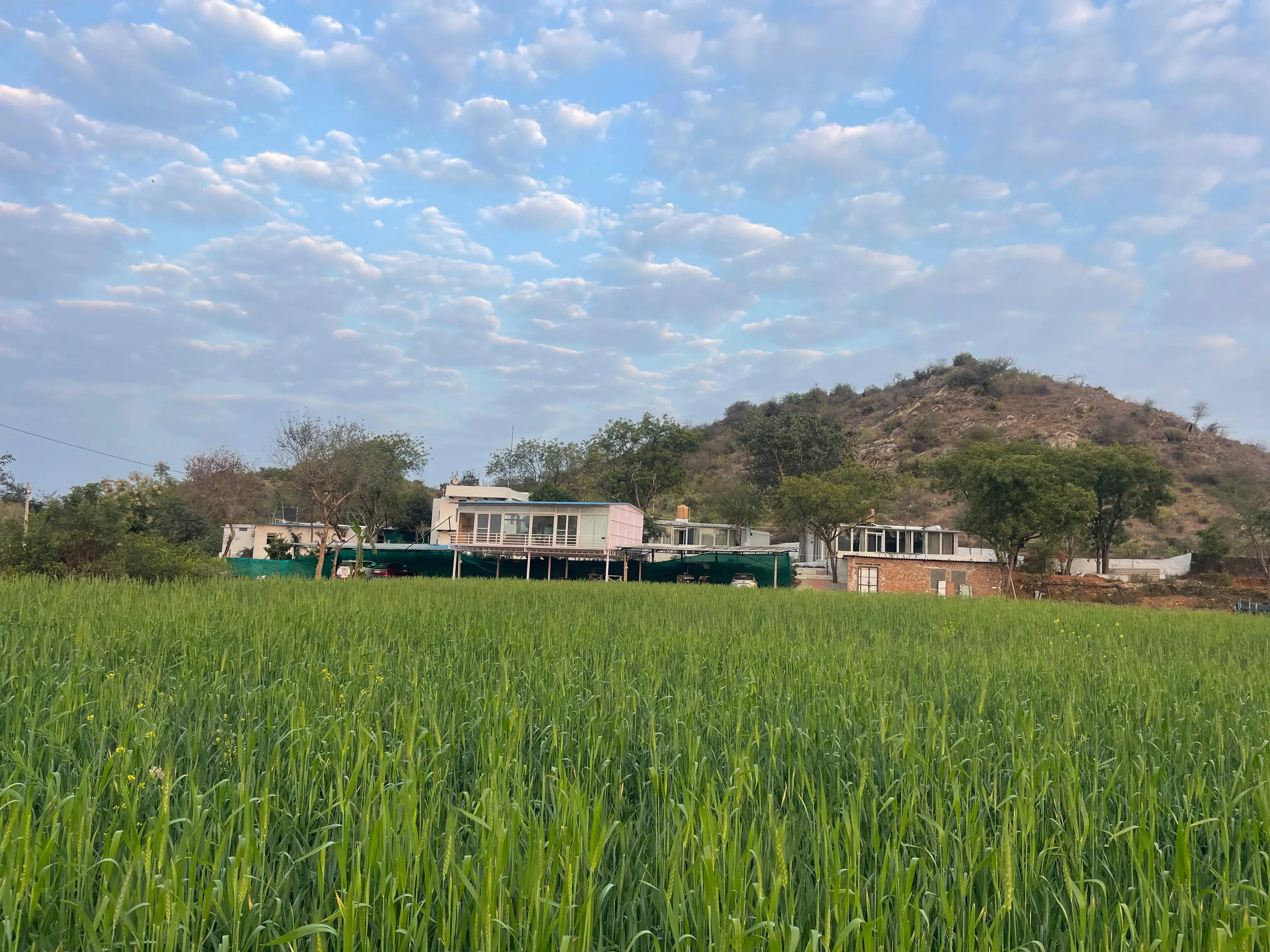 Spread across over 60 acres, the estate sits surrounded by open land, small hills and uninterrupted skies. With no nearby houses or noise, the space offers complete privacy — whether you’re here for a peaceful stay, a family gathering, or a destination celebration.